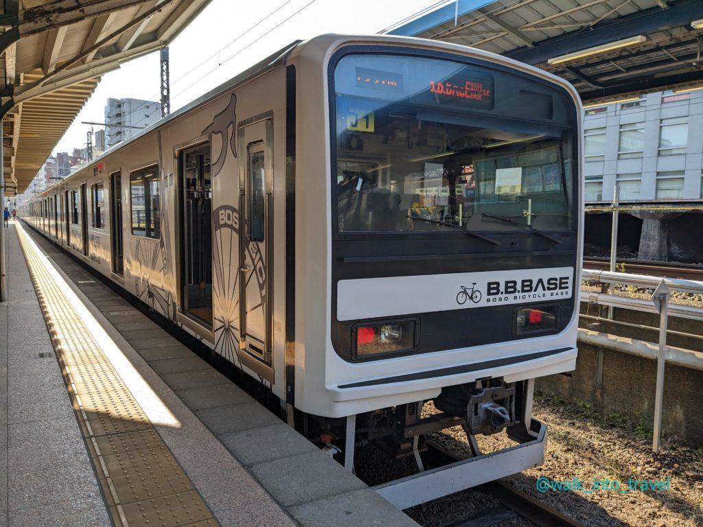 さて、旅の出発はB.B.BASEの始発駅である両国駅。この駅は両国国技館で有名ですが、千葉の鉄道玄関口として長い間利用されてきた駅です。武蔵国と下総国の両方の国を結ぶ名前の通りの役割をもっています。B.B.BASEの出発は概してやや早く、私が乗車したときは8時12分発でした。途中停車駅はサイクリストのために設計されており、たとえば千葉駅ではなく東千葉駅停車するといったイレギュラーな停まり方をします。