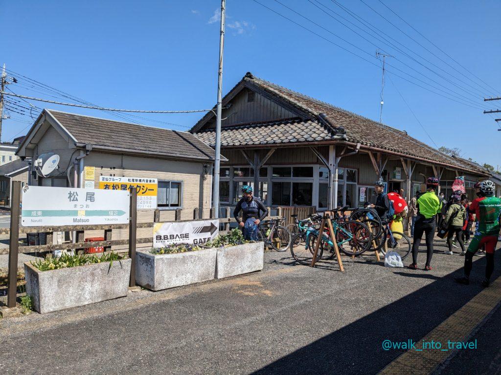 松尾駅停車中、右奥でいちごとおにぎりをいただきました!味わいのある駅舎。いつか下車したい。