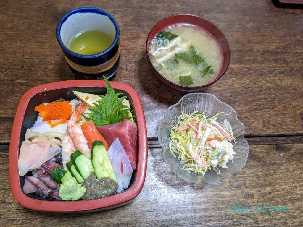 乗車して2時間半ほどたった10時36分、終点銚子駅に到着しました。銚子電鉄も乗り入れる銚子駅ですが接続があまり良くなかったためここでお昼ご飯。銚子といえば海鮮!ということで近くの海鮮料理屋さんへ。実は銚子駅周辺の徒歩圏内にあまり海鮮ごはん屋さんは多くなく、どれも小さいお店なのであらかじめ調べていくのが良いと思います。私は「山水」という駅から10-15分ほど歩いた場所にある個人経営の小さな料亭にお邪魔しました。